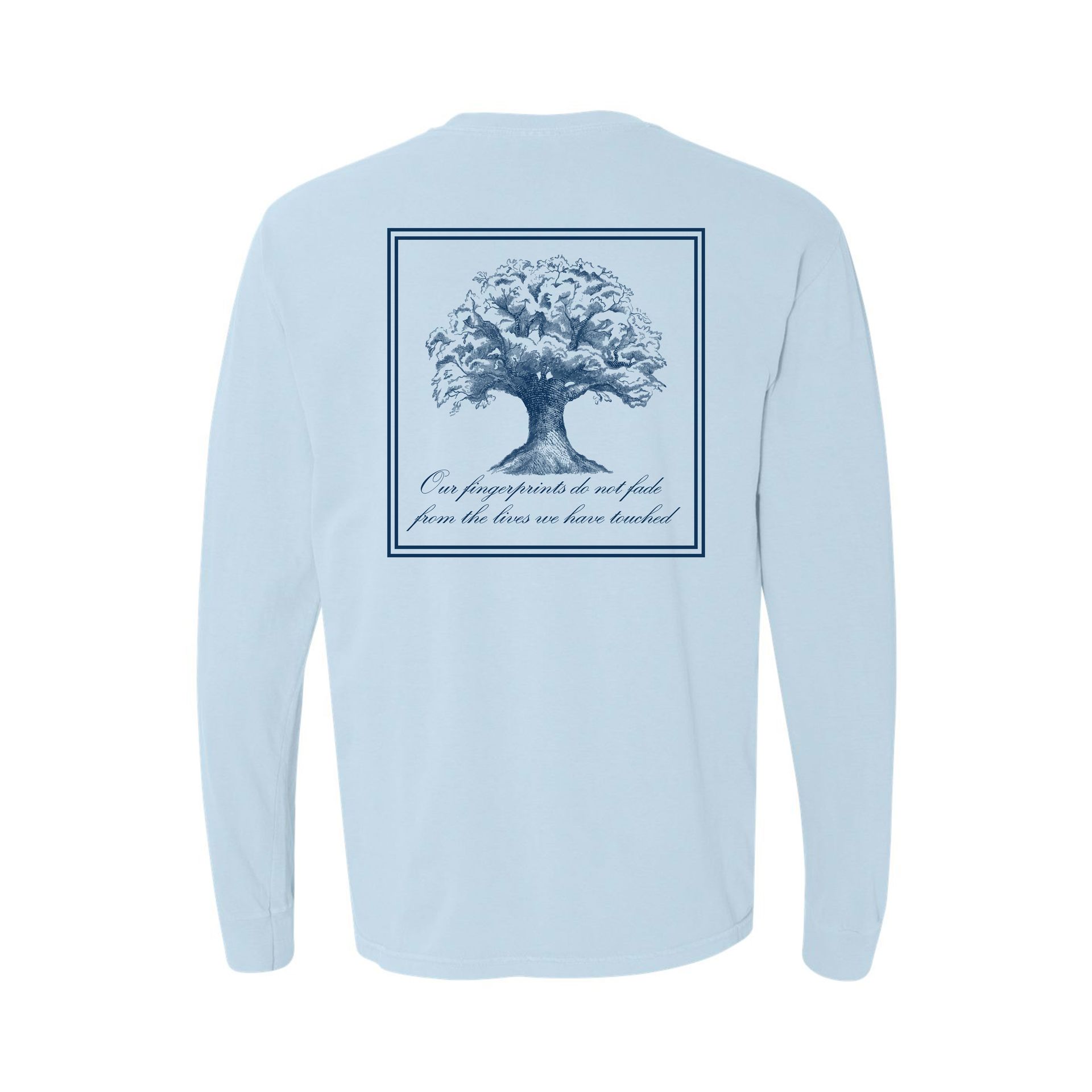 This shirt design was drawn by Joe's girlfriend Kayla as a special gift in memory of Joe. One of Joe's original shirt ideas involved a beautiful tree similar to the one Kayla drew for this design. She also wanted to incorporate a special part of Joe into this picture so she used his fingerprint to create the unique texture on the bark of the tree. Drew, one of Joe's friends, discovered the quote that perfectly encompasses the meaning behind this design. We have all been impacted, at some point in our lives, by an exceptional person or group of people. Even though we may have lost these wonderful individuals to events, such as death or even illnesses like Alzheimer's disease, we will never forget the mark they have made on our lives. This shirt is a beautiful reminder that their fingerprints will never fade from the lives they have touched.